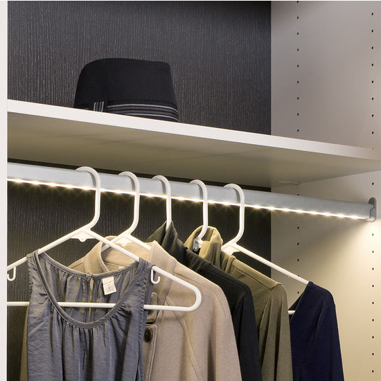 Гардеробна штанга з матовим покриттям ««Оксамитово-біле» освітлення створює вишуканий, першокласний ефект.