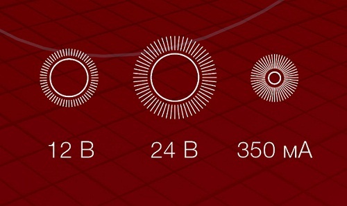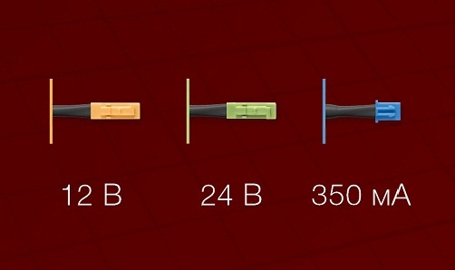 Система 12 В: застосовується головним чином для оточуючого та емоційного освітлення. Система 24 В: використовуються для функціонального освітлення завдяки вищій інтенсивності світла. Система 350 мА: застосовується переважно для точкового освітлення завдяки високій інтенсивності світла.