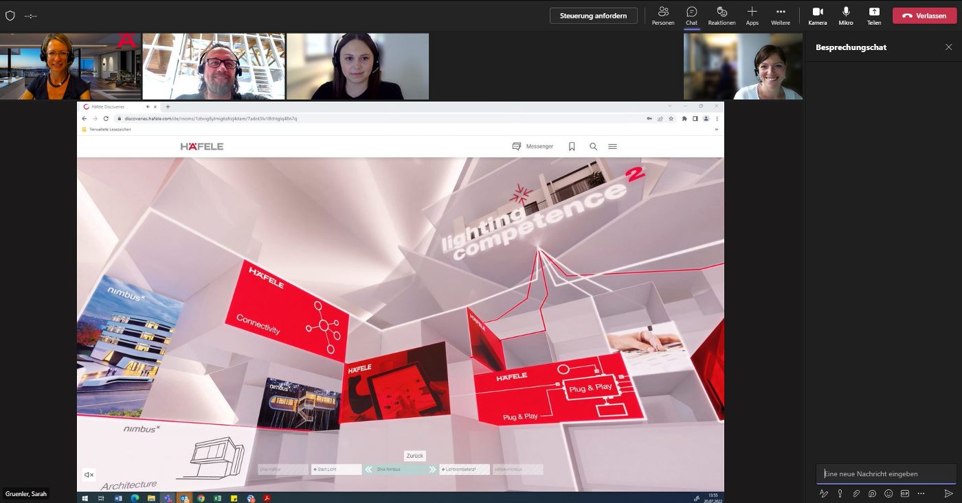 Різні заходи Hafele, такі як роуд-шоу, знову будуть проводитись безпосередньо на майданчику, але гібридний формат Discoveries буде розширеним. На думку компанії Hafele, міжнародного фахівця в галузі меблевої, дверної фурнітури та освітлення, онлайн-світ брендів і надалі залишиться важливим компонентом комунікації. Платформа дозволяє відвідувачам ознайомитися з асортиментом послуг та продукції Hafele у будь-який час та в будь-якій точці світу.