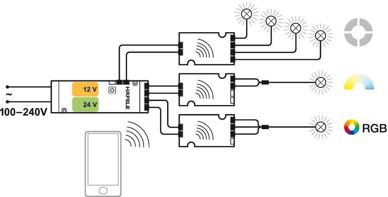 Приложение Häfele Connect для управления через Bluetooth доступно бесплатно для Apple iOS® 8.2 и Android ™ 4.4 или выше.