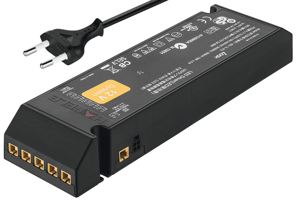 Блок питания, Häfele Loox, 12 В - Loox, постоянное напряжение, с сетевым проводом, с вилкой EU параллельное соединение
