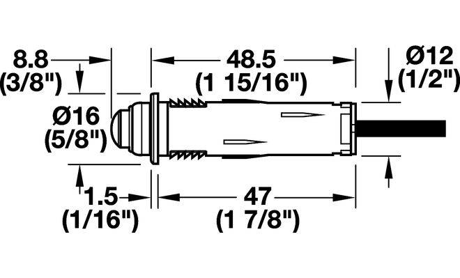 Технические характеристики Детектор движения пластик серебристый 48.5 мм D12 мм