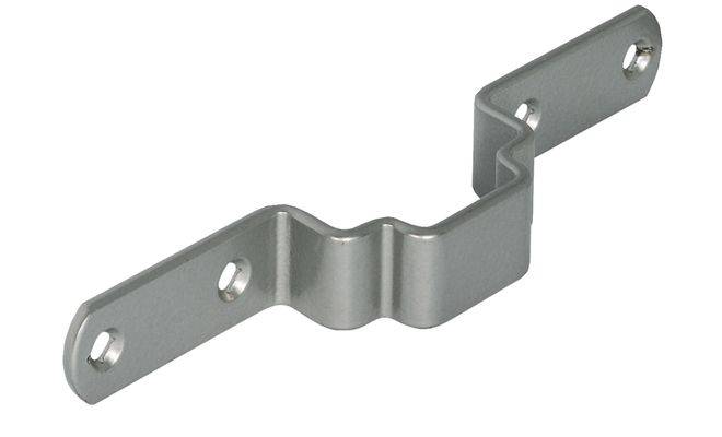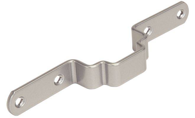 Стабилизатор лицевой панели изготовлен из стали с пластмассовым покрытием цвета белый алюминий. Размеры: 160х28х20 мм.