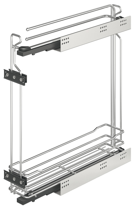 Описание Фронтальный выдвижной механизм для кухонных тумб 150 мм карго с доводчиком и вешалками для полотенец 2-уровня хром проволочная корзина