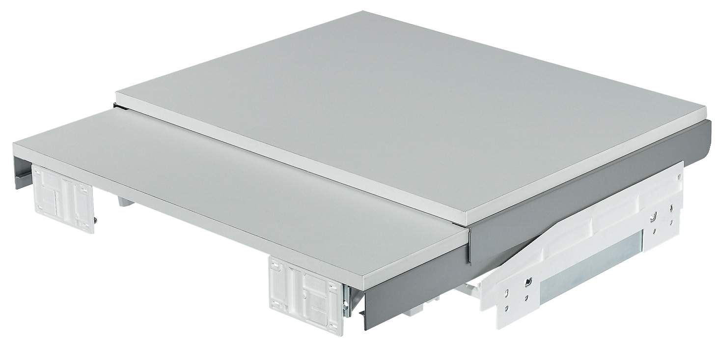 Описание Фурнитура для выдвижного стола оснащена рабочей плитой ширина ящика 600 мм выжение 810 мм глубина от 500 мм с рабочей плитой