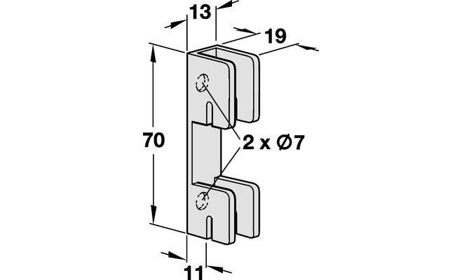 Технические характеристики Крючок для навершивания на боковые отверстия стоек с 2-рядной перфорацией