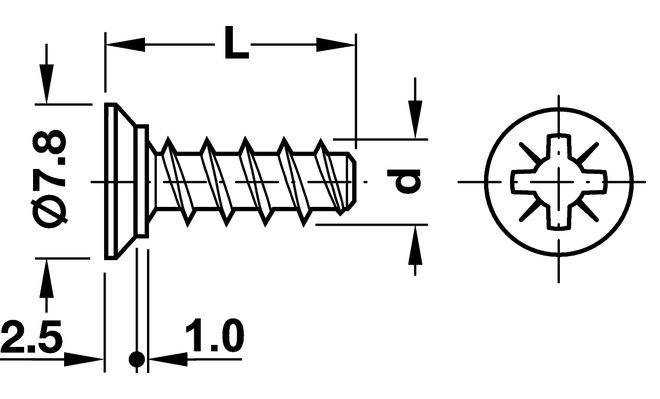 Винт для вкручивания в древесину, для отверстий Ø 3 мм, изготовлен из никелированной стали. Параметры винта: привод: крестовый шлиц PZ2, шаг резьбы 2 мм, внешний диаметр 4,2 мм, внутренний диаметр 2,8 мм, длина 13,5 мм.
