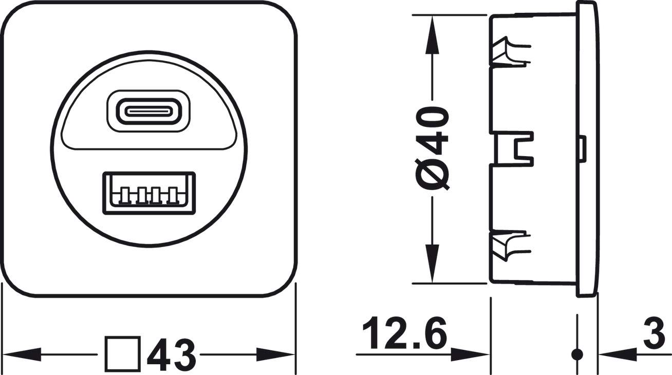 Описание USB-зарядная станция Häfele Loox5, USB-A / USB-C, 12 В скрытый монтаж черная 83373808