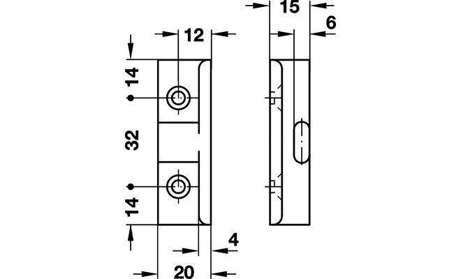 Угловая часть стяжки Keku AD для расстояния между панелями 15 мм, для крепления к нижним конструкциям.