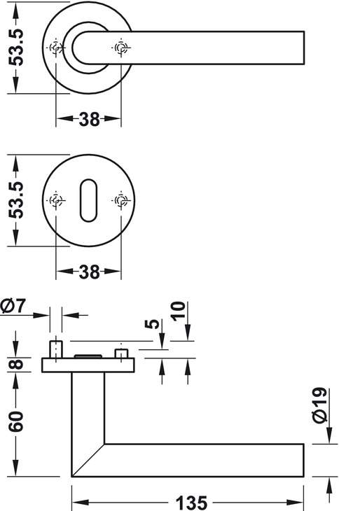 Подшипник Рукоятка рычажная, вставленная в розу, пружинящая