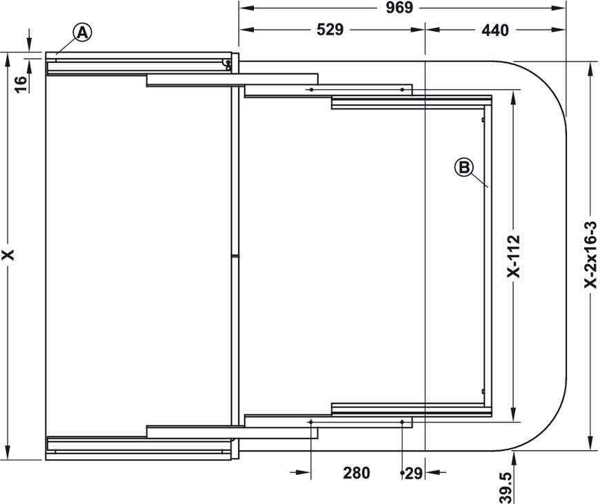 Технические характеристики Комплект фурнитуры для выдвижного стола 600 x 550 мм цвет серебряный