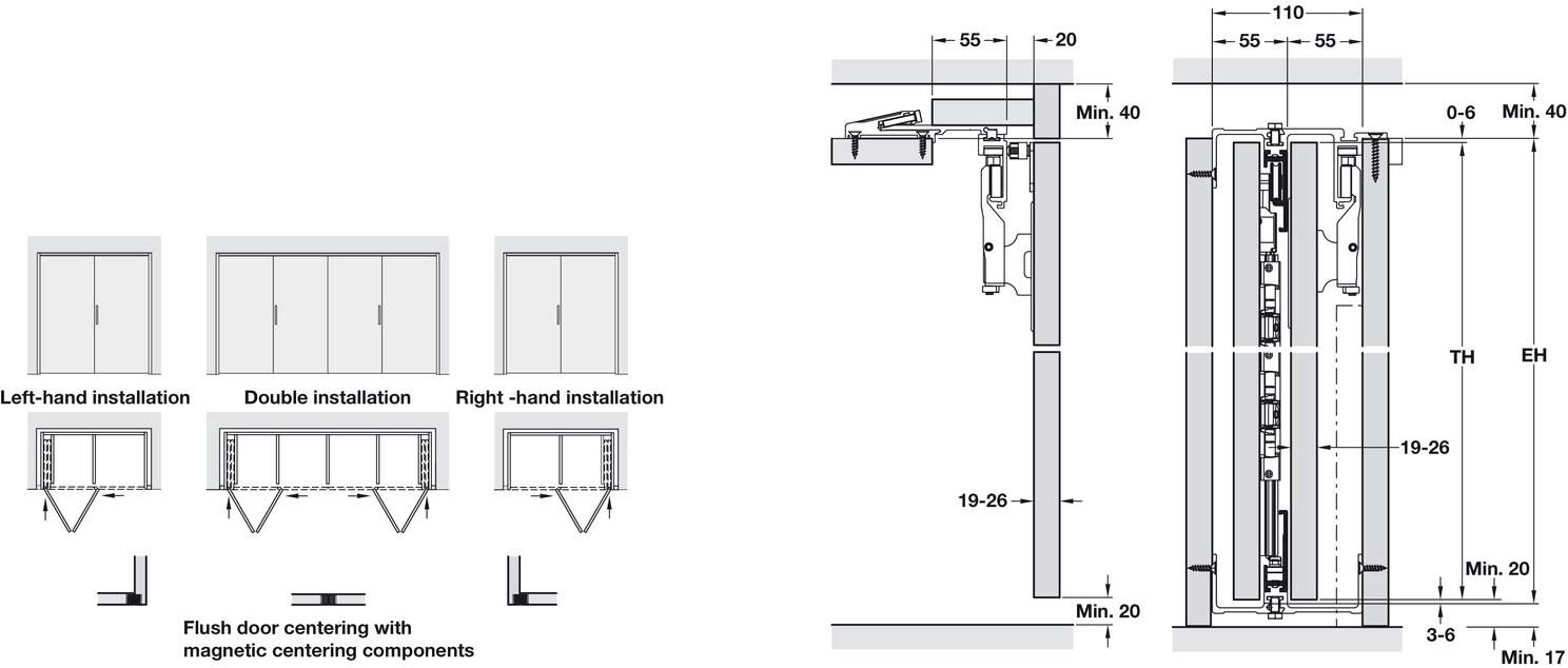 Область применения: для поворотно-выдвижных дверей