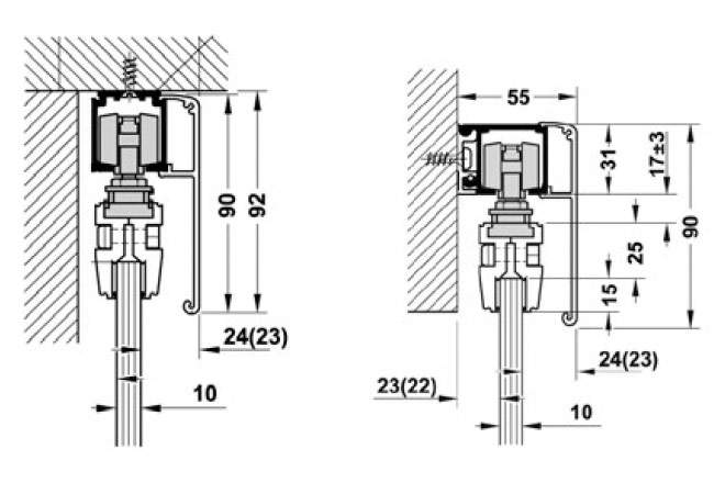 Комплект фурнитуры Slido Classic 120-L вариант B, весом дверного полотна до 120 кг, ширина> 717 мм с односторонним демпфером с ходовой шиной, алюминий без покрытия 2 м и заглушка R 90 мм 2 м (монтаж к потолку)