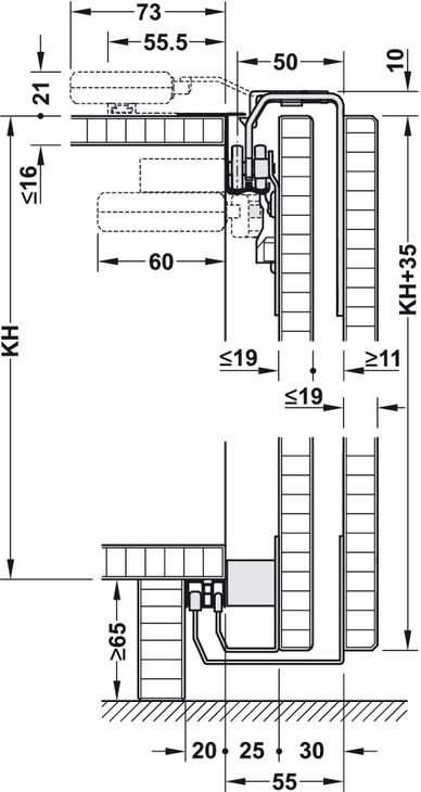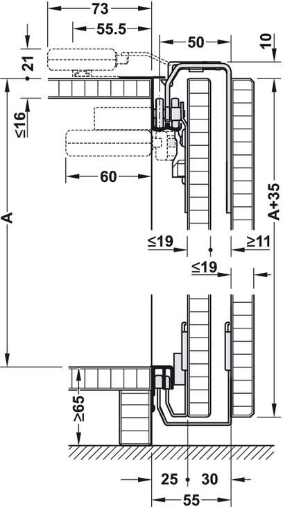 - Наложение полотна: 0 мм (Без ручки профиля и Smuso CD), 35 мм (С использованием Smuso CD)