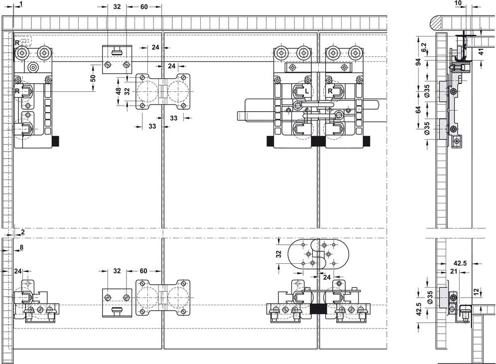 Описание Комплект фурнитуры Slido F-Fold62 40A для деревянной двери нагрузки 40 кг