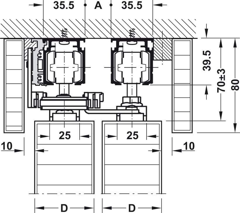 Технические характеристики Комплект фурнитуры Classic 100-A для двух дверей 94137000