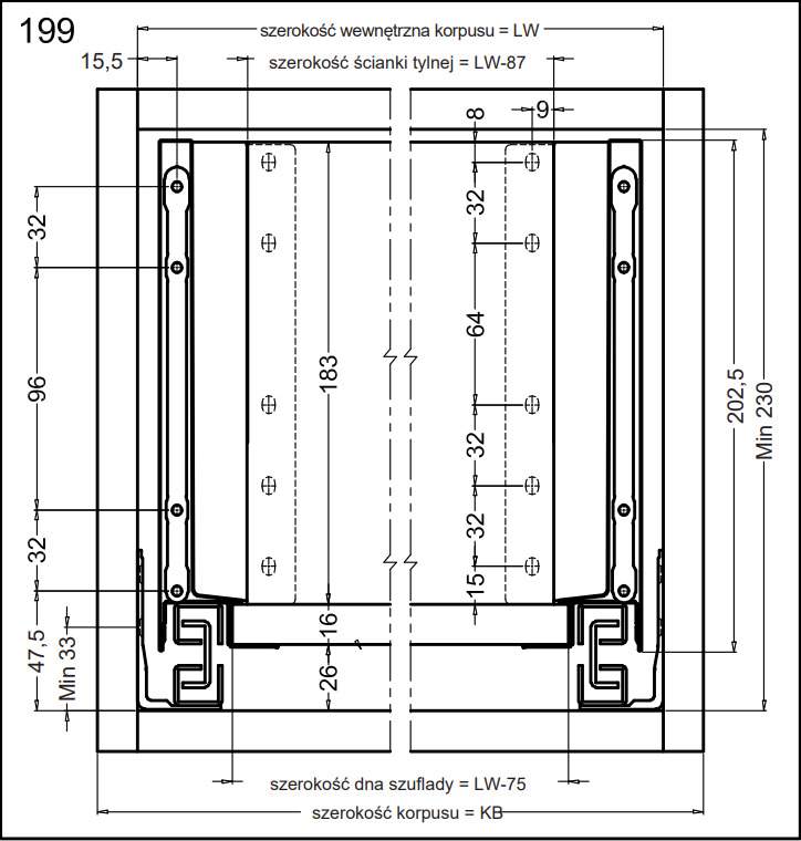 Технические характеристики Комплект ящика высокого Matrix S Slim 2.0 с доводчиком H199 L450 35 кг Черный 51415324