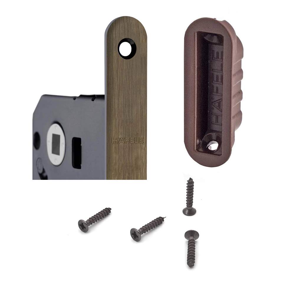 Примечание: в этом комплекте планка (коричневая) и шурупы (бронза) могут немного отличаться по оттенку от замка в цвете «старая бронза».