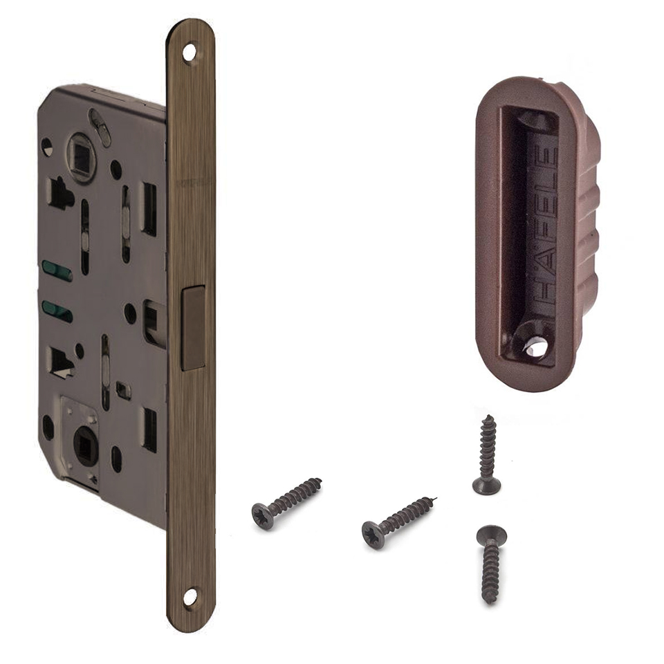 Комплект FORTY NG (арт. 499.10.455) предназначен для межкомнатных дверей санузлов (WC). В набор входит врезной магнитный замок в цвете старая бронза, ответная планка и крепёжные шурупы.