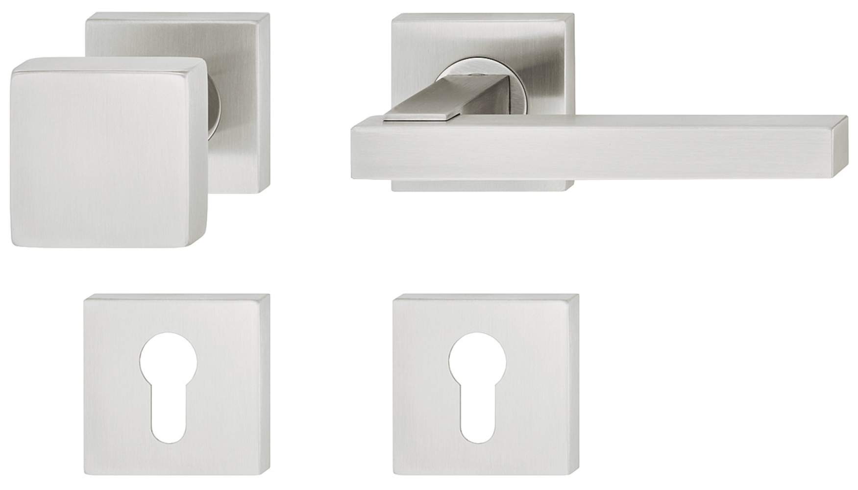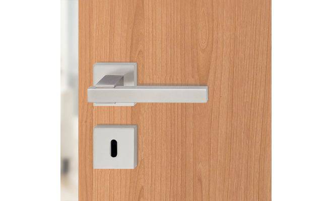 Комплект нажимных ручек, изготовленных из нержавеющей стали. Поверхность матовая. Крепление одностороннее, с помощью 2 винтов 4 х 40 мм. Применяются для деревянных дверей под ключ с бородкой. Прекрасно подойдут к дизайну современных интерьеров и будут служить долго и надежно благодаря качеству и надежности используемых материалов.