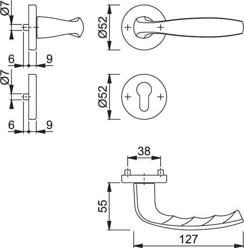 • Осевая соединения дверной ручки прошло испытания в соответствии с DIN EN 1906