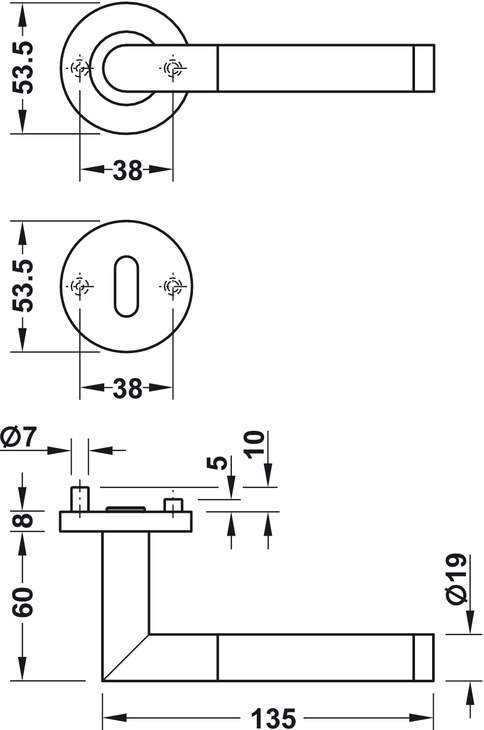 Технические характеристики Комплект рычажных ручек LDH 2171 WC изготовлен из нержавеющей стали