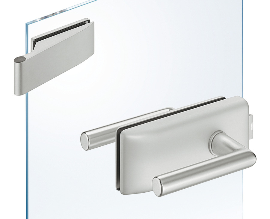 Выбор фурнитуры для дверей станет легкой задачей, если вы обратите свое внимание на ассортимент бренда Hafele. Этот немецкий производитель уже не раз подтвердил свою хорошую репутацию. В комплект включен запорный механизм, 2 петли, фиксирующие детали. Разработаны для стекла толщиной 8 мм. Вес двери – меньше 45 кг. Фурнитура произведена из нержавеющего алюминиевого сплава. Характеризуется прочностью, устойчива к появлению коррозии. Серебристый цвет и дизайн деталей являются универсальными. Это плюс, поскольку так они смогут гармонично вписаться в интерьер в разных стилях.