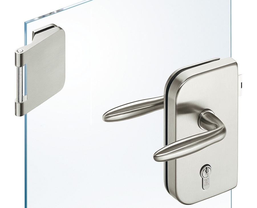 Технические характеристики Комплект замка РС нержавеющая сталь матовая (3 части) по DIN левый для стекла 8 мм весом двери до 55 кг