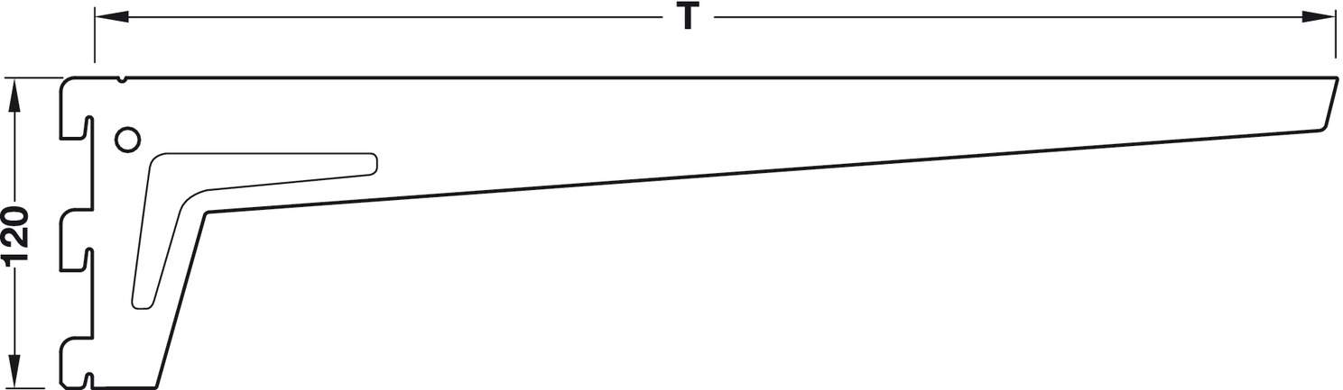 Технические характеристики Консоль без прикручивания 480 мм черная нагрузка 65 кг c 3-мя крюками 2.5 мм толщина