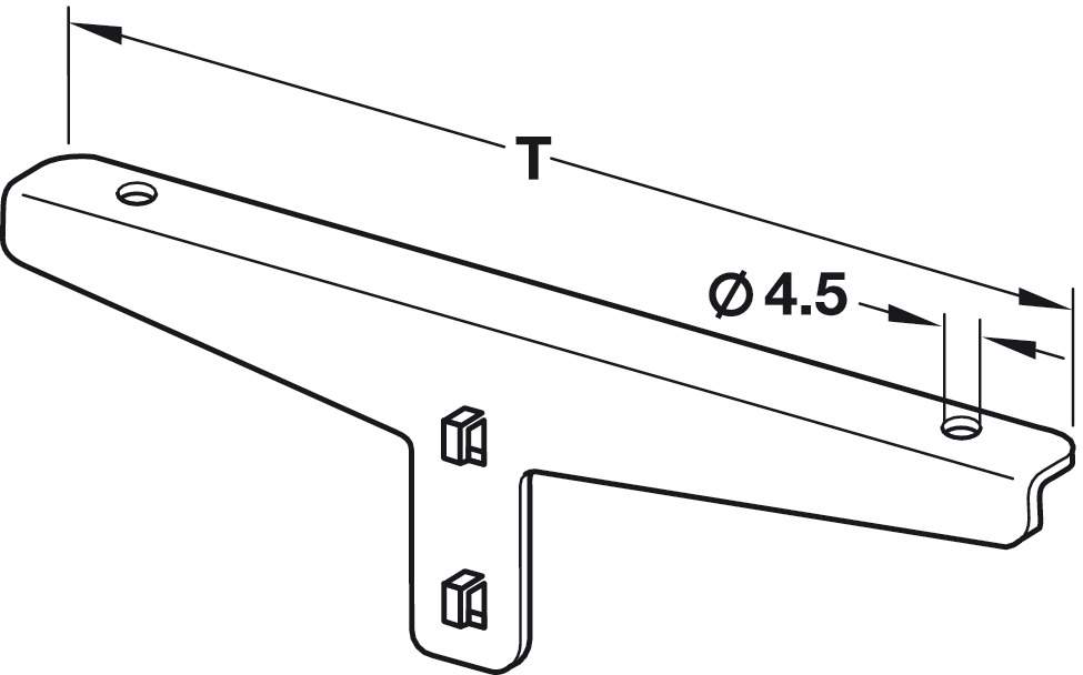 - С двумя отверстиями Ø 4,5 мм для винтового крепления деревянной полки