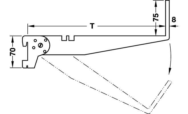 Технические характеристики Консоль с наклоном 20 °, 30 °, 40 °, 57 °, 75 °, 90 ° сталь алюминий 300 мм нагрузка 75 кг