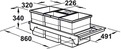 Описание Мусорник для сортировки отходов на 4 ведра 2 х 18л, 2 х 8л серый для ширины корпуса 900 мм