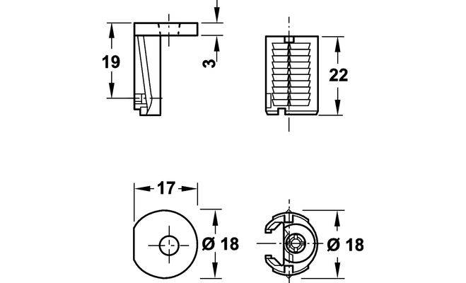 Технические характеристики Корпус стяжки Tab18 V 32 пластмасса цамак без покрытия (упаковка 100 шт) 26364607