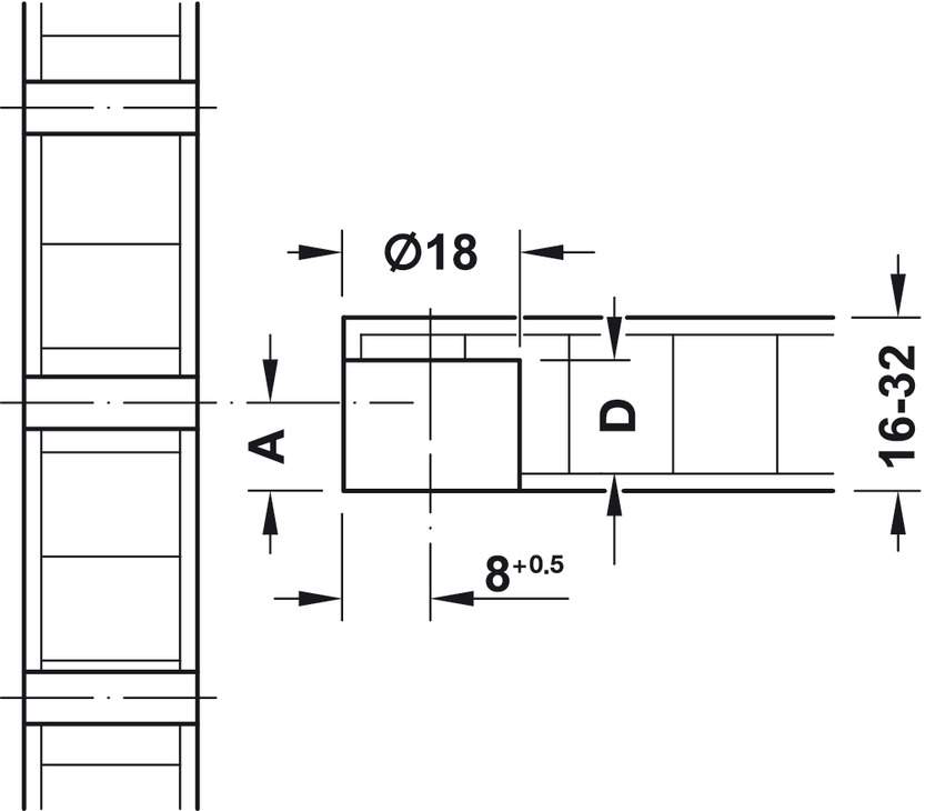 Глубина сверления D 18,5 мм
