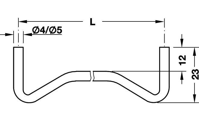 Кронштейн шведский, для вставления в два отверстия, материал: стальная проволока, никелированная, длина 160 мм, для невидимого крепления полок с пазами, несущая способность 80 кг, для отверстий диаметром 5 мм.