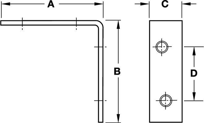 Уголок с 4 отверстиями, изготовлен из желтой хромированной стали. Размеры уголка (мм): ширина сторон = 50х50мм, длина = 15 мм.