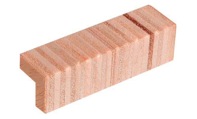 Угловой соединитель предназначен для получения прочных угловых соединений с аккуратными передними кромками. Соединитель изготовлен из слоистой древесины натурального цвета. Параметры: угол соединения- 90 °, для толщины панели- 22 мм, ширина сторон- 16х16 мм, толщина- 6 мм, длина- 50 мм. Монтаж выполняется путем фиксации с помощью клея с применением струбцины для склеивания.