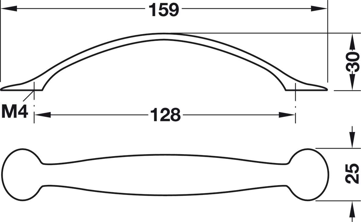 Технические характеристики Мебельная ручка дуга цамак 159 x 30 мм никелированный матовый