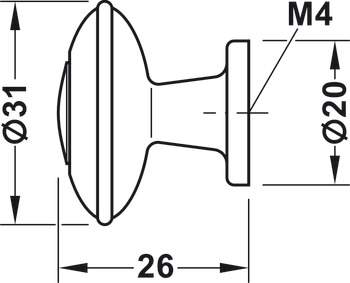 Технические характеристики Мебельная ручка кнопка цамак 31 х 26 мм железный