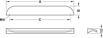 Технические характеристики Мебельная ручка планка цамак 178 х 13 мм хромированный полированный