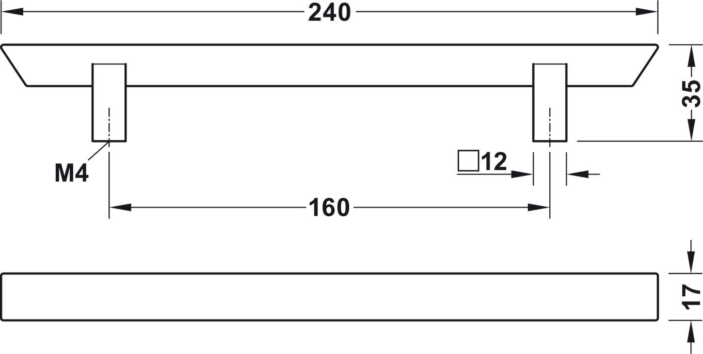 Технические характеристики Мебельная ручка рейлинг цамак 240 х 35 мм никелированный матовый
