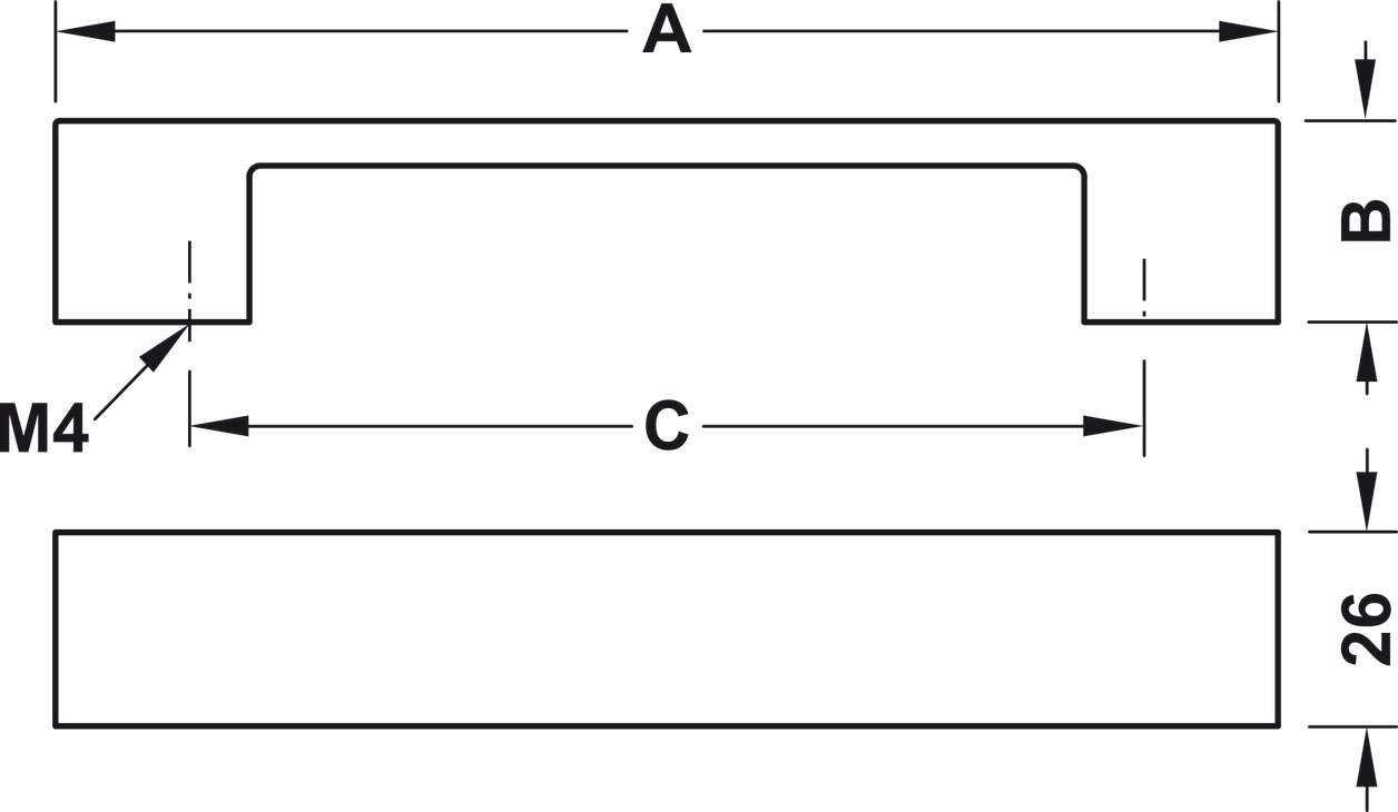 Технические характеристики Мебельная ручка скоба пластик 164 х 27 мм хромированный полированный