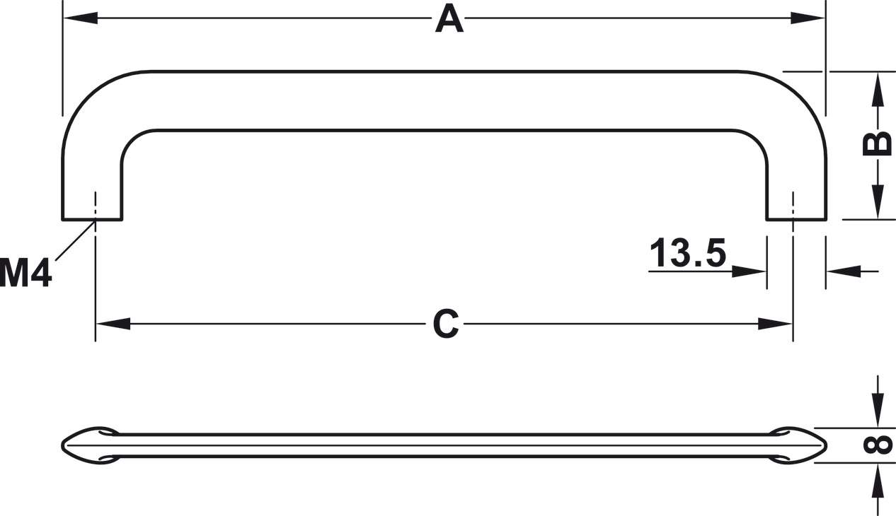 Технические характеристики Мебельная ручка скоба цамак 79 х 35 мм серебряный матовый