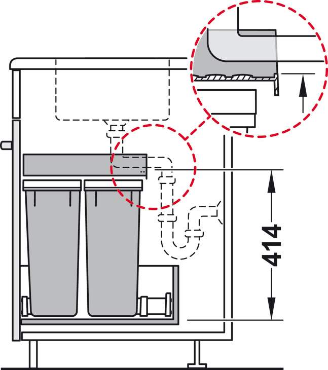 Технические характеристики Модульная система сортировки мусора Hafele Premium L4 4x12 л для шкафа 600 мм 50192402