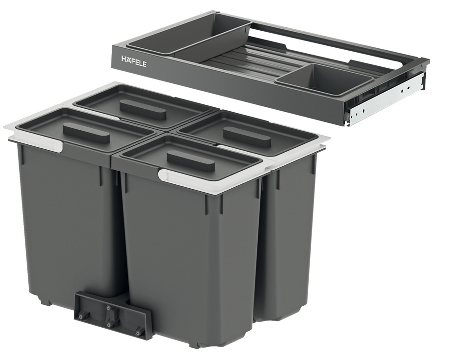 Выдвижная система сортировки мусора Hafele Premium L4 4×12 л для шкафа 600 мм