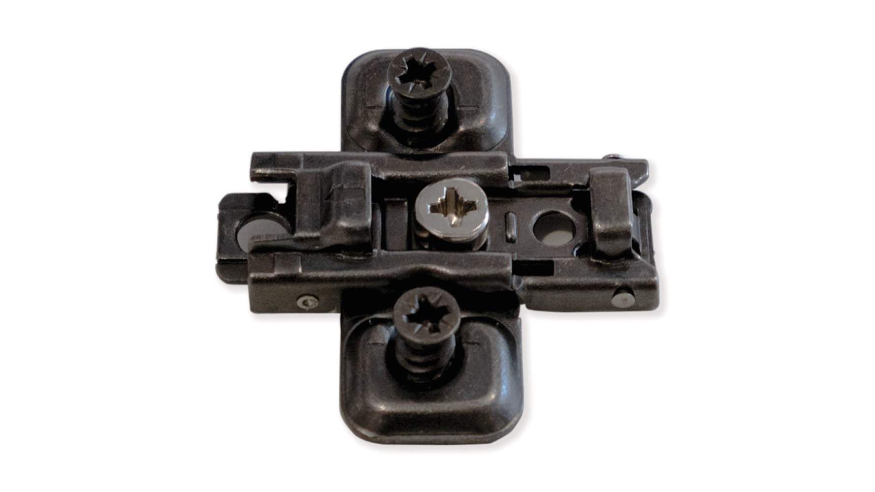 Черная крестообразная планка H2 с креплением под еврошуруп — премиальное решение для точного монтажа петель Metalla 540 SM в темных интерьерах.