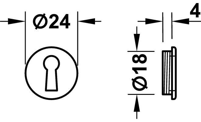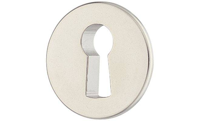 Декоративная накладка круглой формы под ключ, изготовлена из цинкового сплава цамак, никелированная с матовой поверхностью.