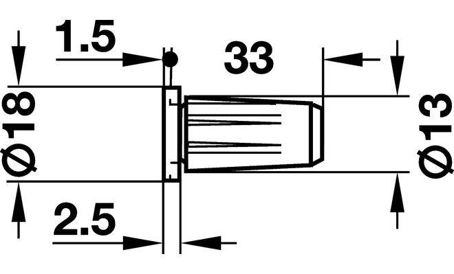Наконечник с плоской головкой, для труб диаметром 16 мм. Наконечник для труб изготовлен из цинкового сплава с хромированной, полированной поверхностью, запрессовочная муфта изготовлена из пластмассы. Размеры наконечника: диаметр ножки 13 мм, диаметр головки 18 мм, длина ножки 33 мм, толщина головки 2,5 мм.