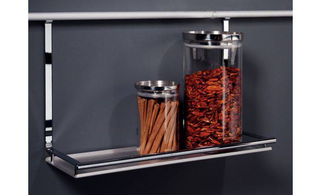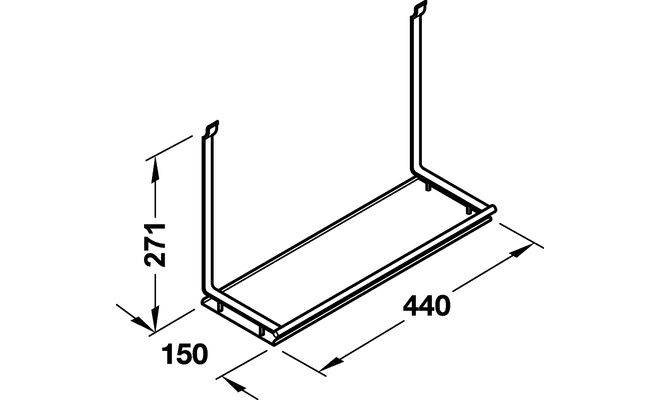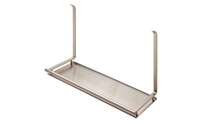 Навесная полка изготовлена из алюминия, держатель изготовлен из никелированной стали с матовой поверхностью. Размеры навесной полки: 440 x 150 x 275 мм.