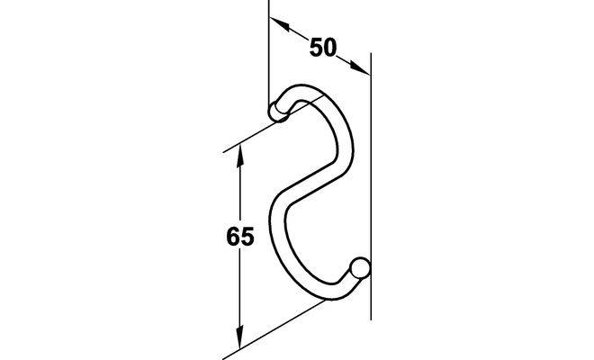 Одинарный навесной крючок, изготовленный из хромированной стали с матовой поверхностью. Глубина крючка 50 мм, высота 65 мм.